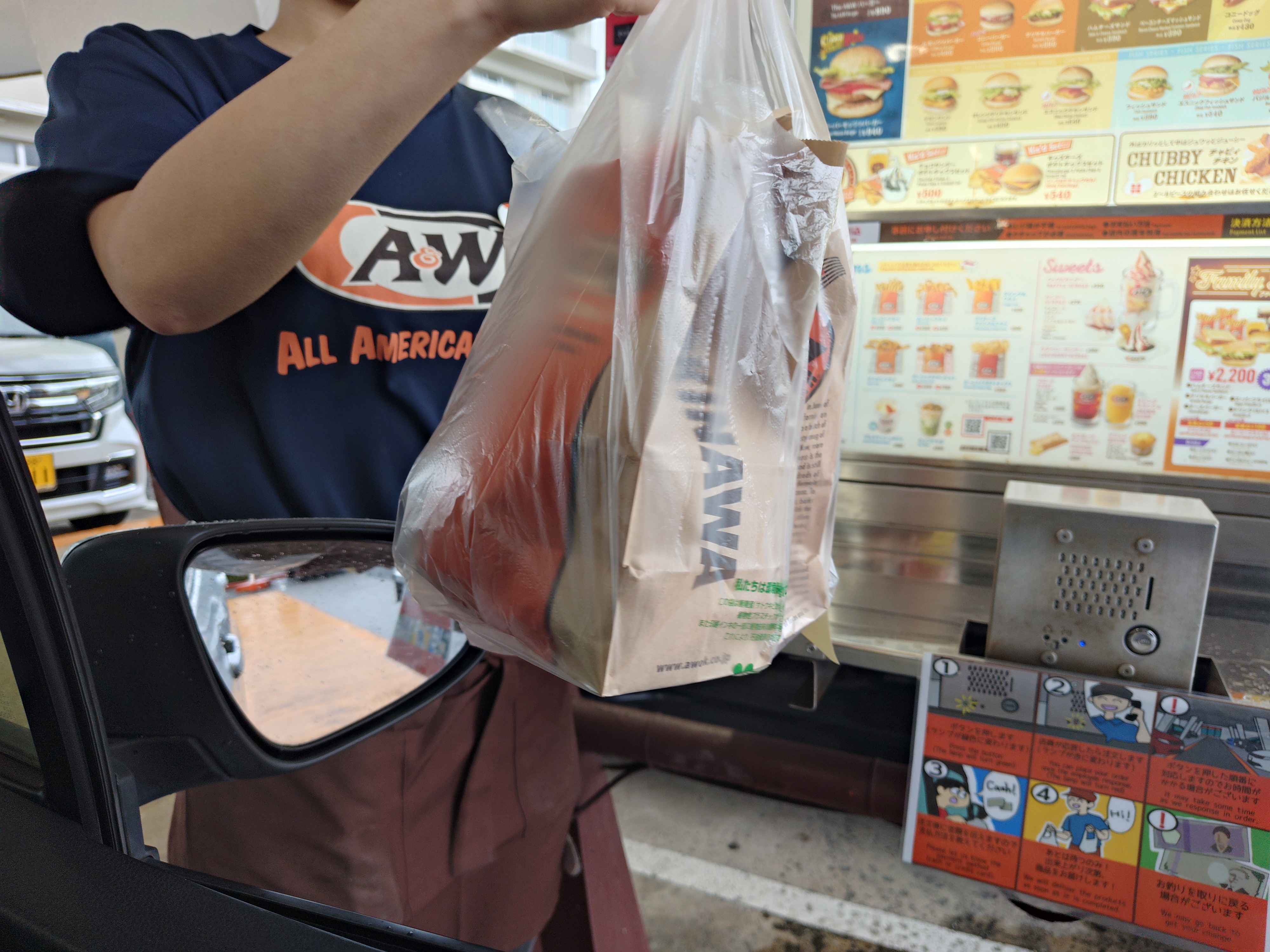 車で注文して車に持ってきてくれます。